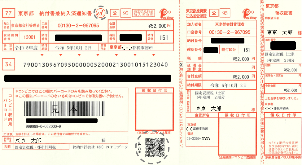 納税通知書に、「eLマーク]及び「eL-QR」が記載されているもの
